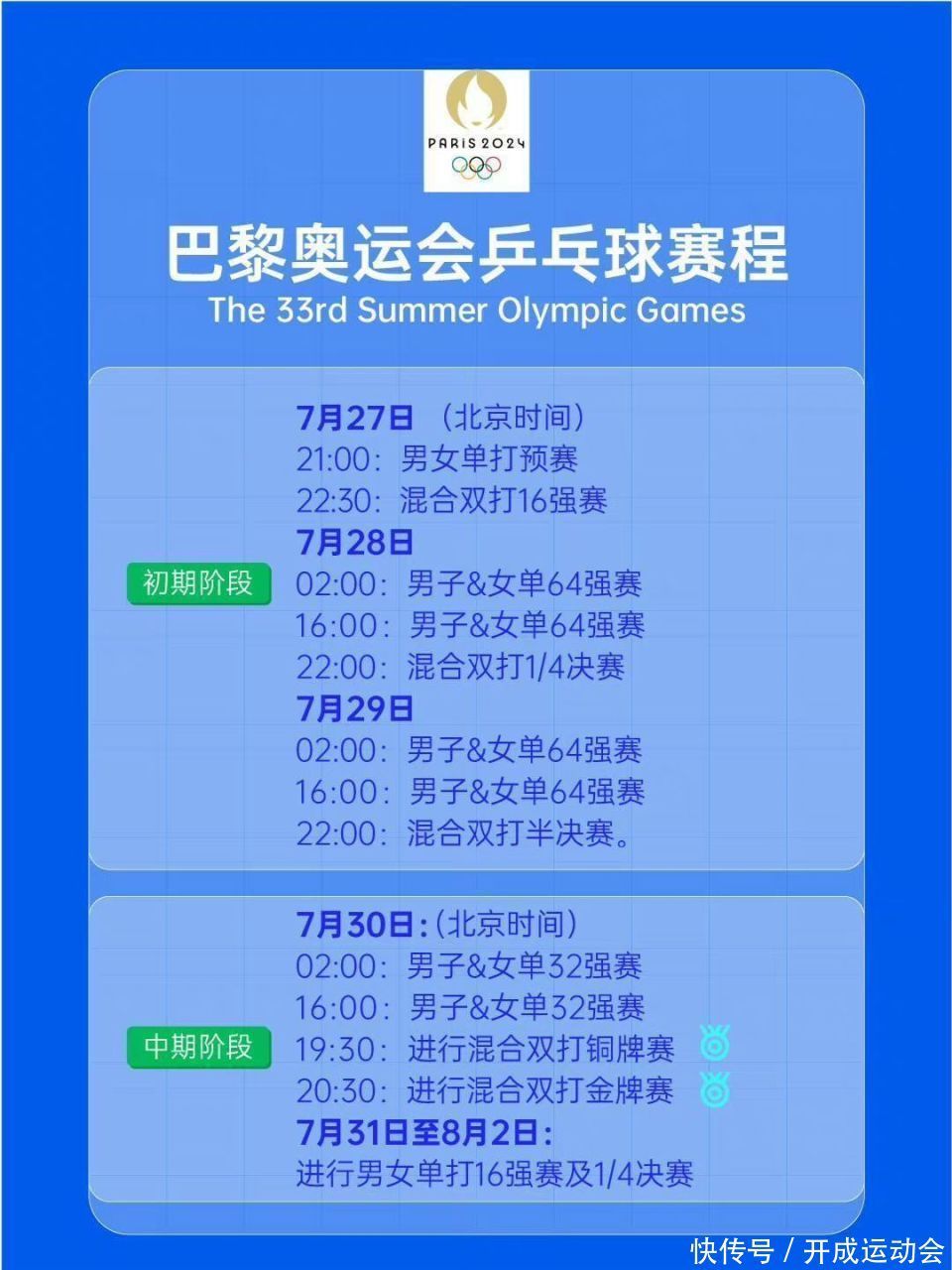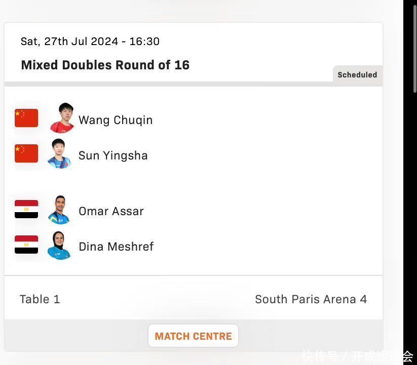 2024年7月27日,巴黎奥运会乒乓球国乒赛程出炉,敬请期待!其中,7月27日22点30分,混双1皇冠信用网输了还不上会怎么样/8决赛:王楚钦/孙颖莎VS埃及组合阿萨尔/梅谢芙,CCTV5直播,咪咕体育视频直播!