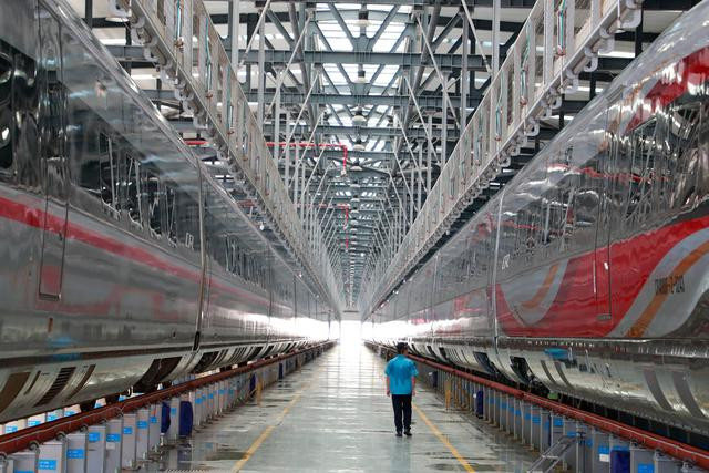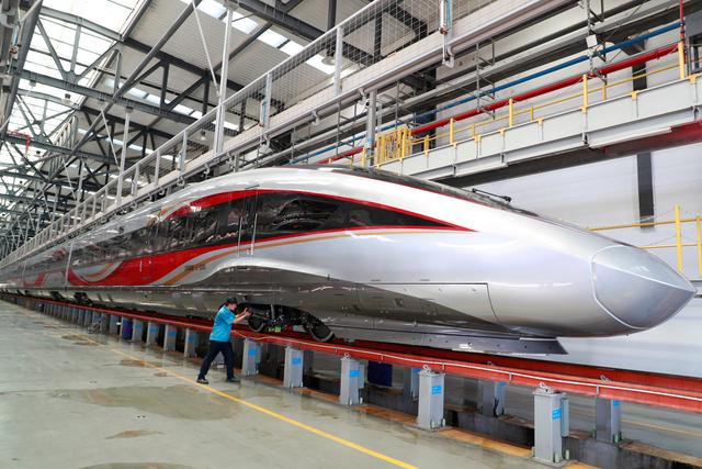 图为CR400BF-Z型回话号智能动车组在武汉动车段“体检”。